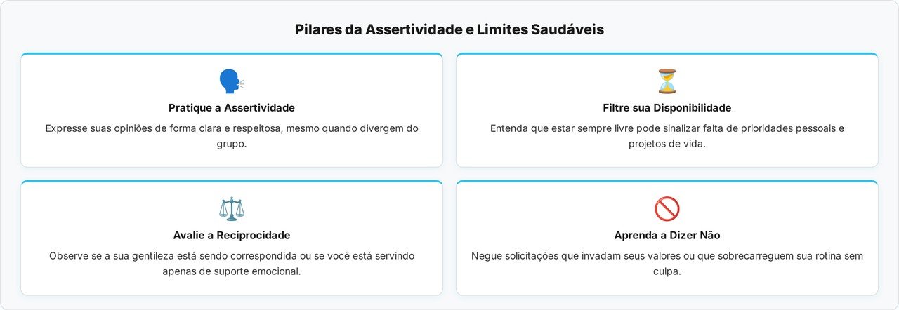 Uma prática recomendada é a substituição do pedido de desculpas constante por expressões de agradecimento ou afirmações diretas sobre suas necessidades. Ao validar seu próprio tempo e espaço, você ensina os outros a valorizarem sua presença, transformando a dinâmica social de uma via de mão única para um intercâmbio equilibrado.