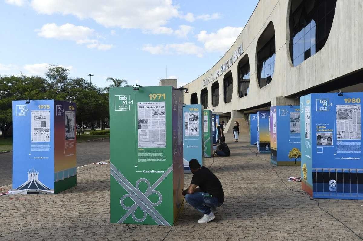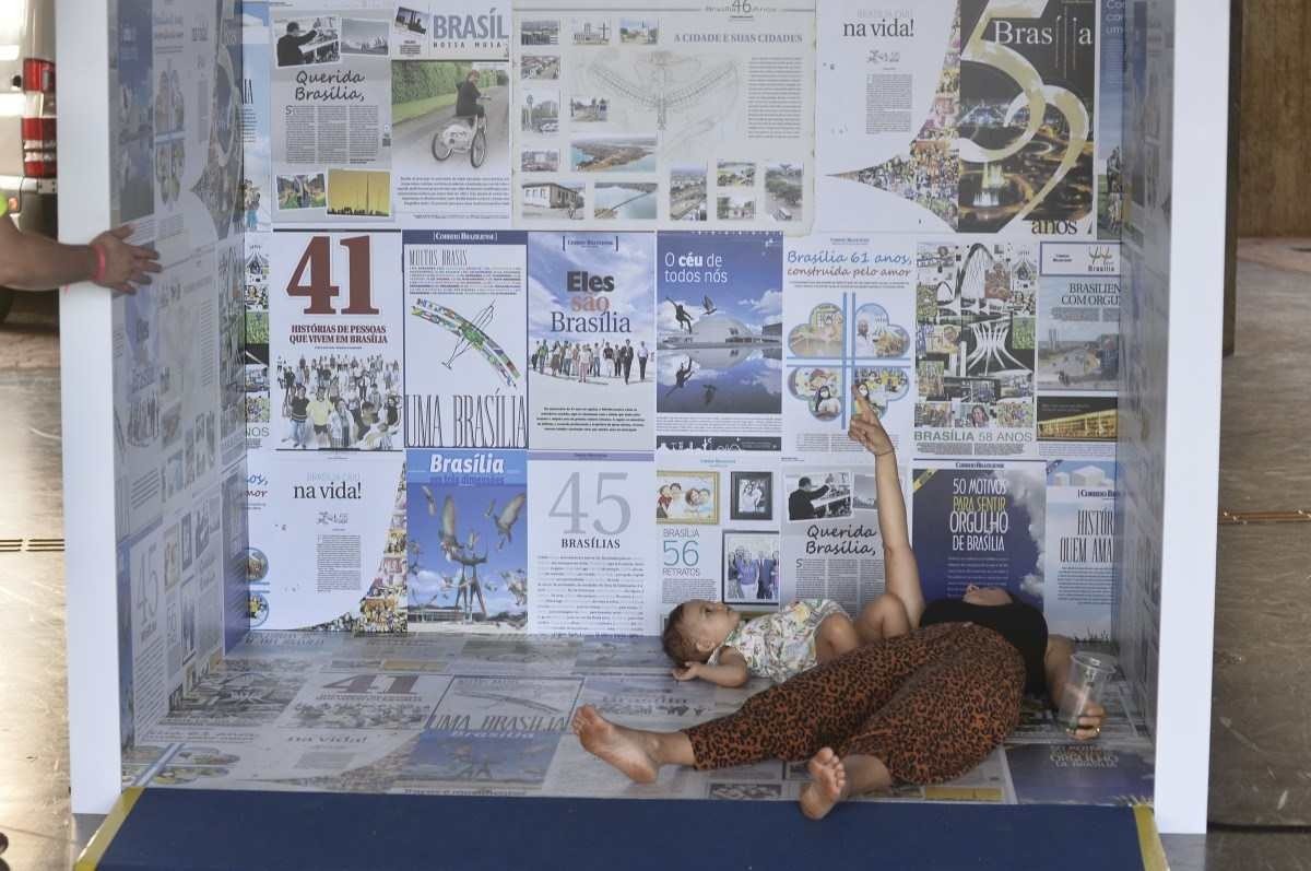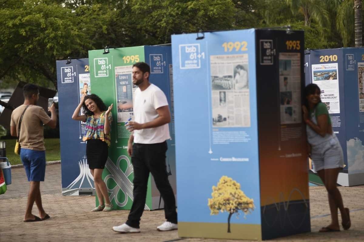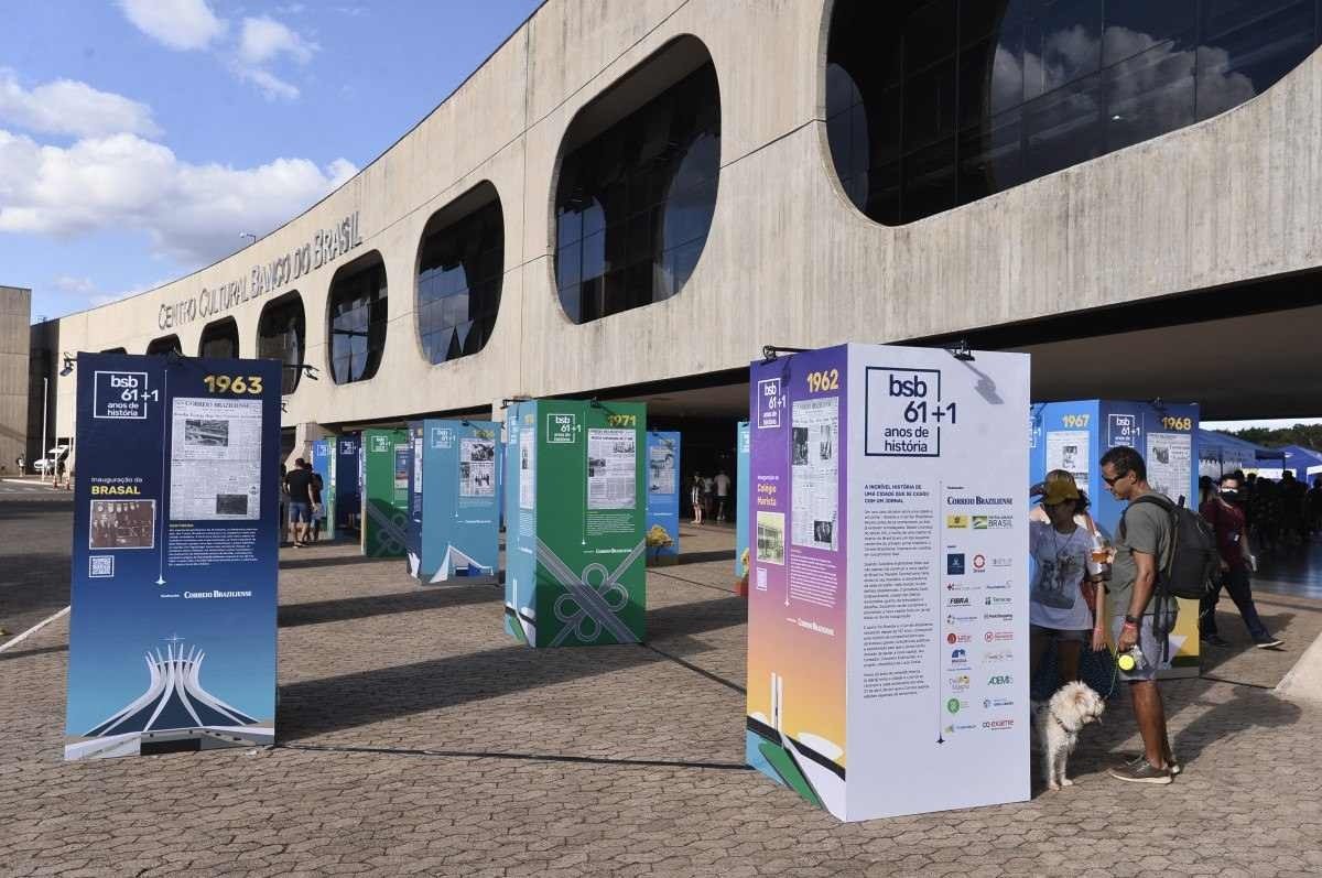 As 62 capas do Correio Braziliense publicadas nos dias 21 de abril de cada ano, podem ser lidas em totens de 2 metros de altura e acompanhadas de viagens multimídias. Algumas edições terão um QR CODE que levará o visitante às histórias de marcas brasilienses que nasceram na cidade e cresceram com ela.