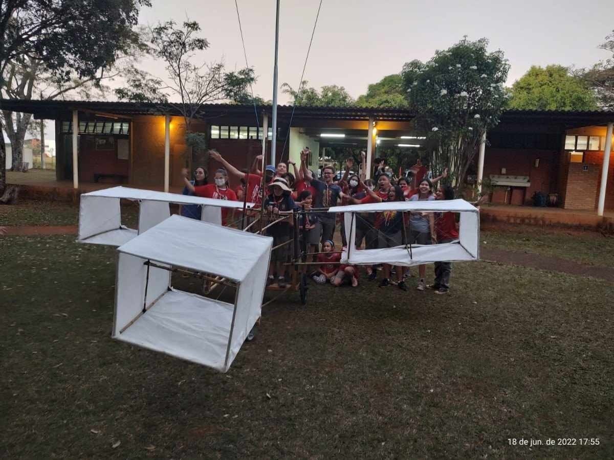 E graças ao esforço da família, conseguiram construir o modelo 14-bis, que mede aproximadamente 4x3 metros. Para a execução do projeto, utilizaram bambus, TNT, arame farpado e rodas de bicicleta. Muitos dos materiais empregados no original feito em 1906.