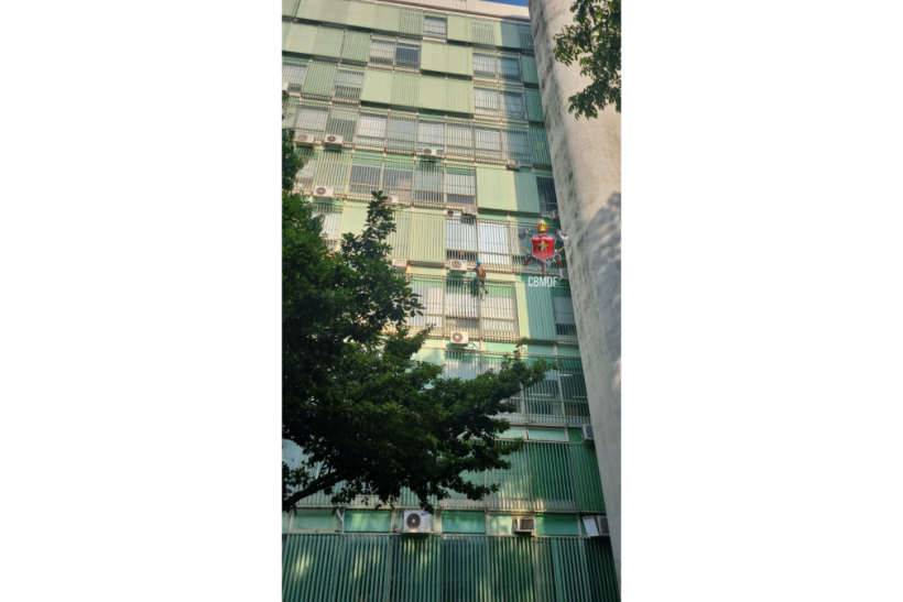 Trabalhador fica pendurado na fachada do Ministério da Ciência e Tecnologia