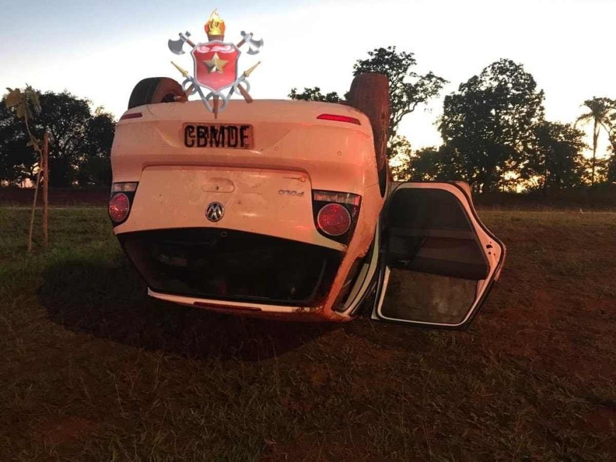 Carro com três pessoas capota próximo à Ponte JK, na Asa Sul