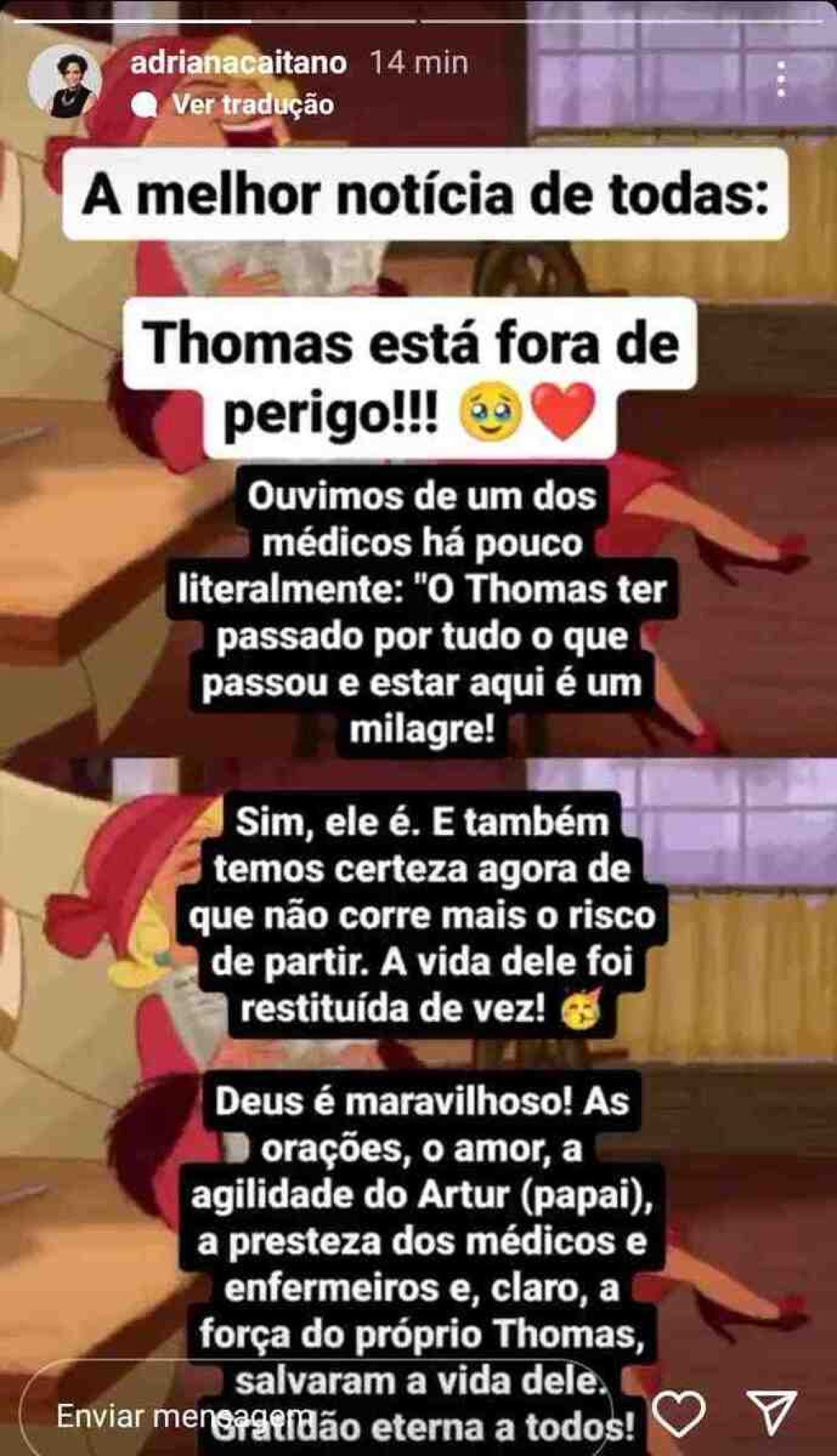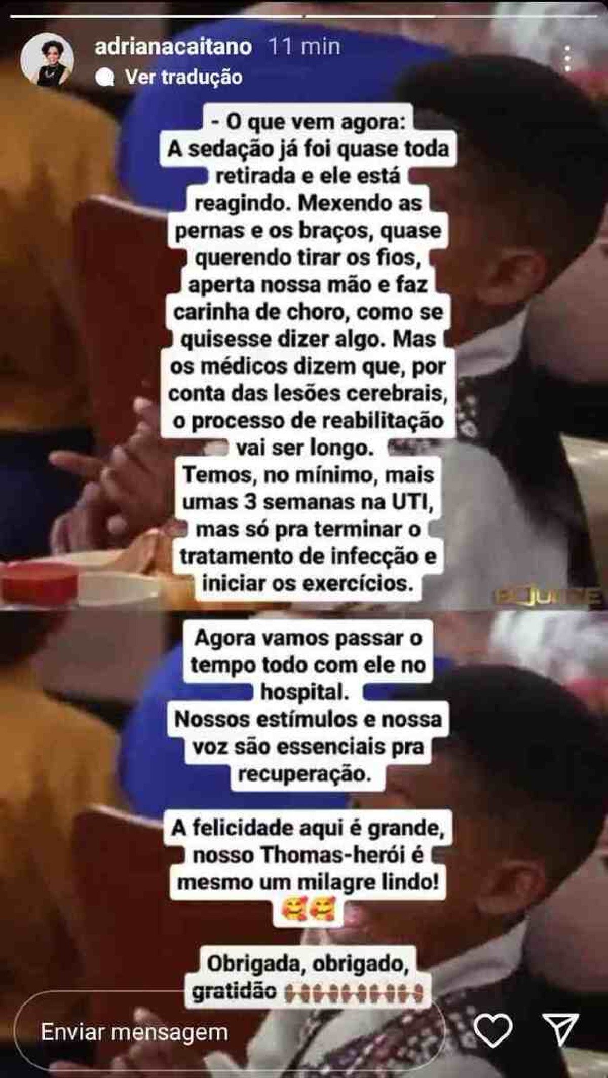 Em duas postagens nos stories, a mãe deu a explicação completa da situação do menino. Confira a íntegra: