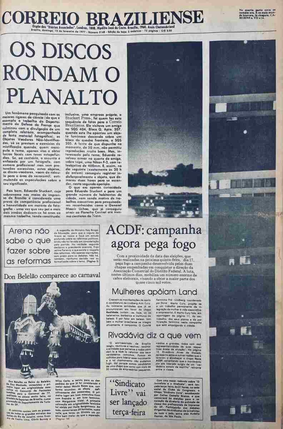 Em 1977, a publicação “Os discos rondam o Planalto” trouxe o assunto em tom de crítica e colocou em pauta o interesse de pesquisadores em relação ao tema. “Um fenômeno pesquisado com os maiores rigores da ciência, os Objetos Voadores Não-Identificados, só se prestam a exercícios de mistificação quando, quem manipula o tema, apenas visa a obter lucros fáceis com teses estapafúrdias. Se, ao contrário, o assunto é enfocado por um fotógrafo, com esmero profissional mas sem pretensões excessivas, estes objetos, os discos-voadores, voam do ridículo para a área do verossímil, estimulando as especulações sobre seu significado”, comentava a matéria em tom de crítica.