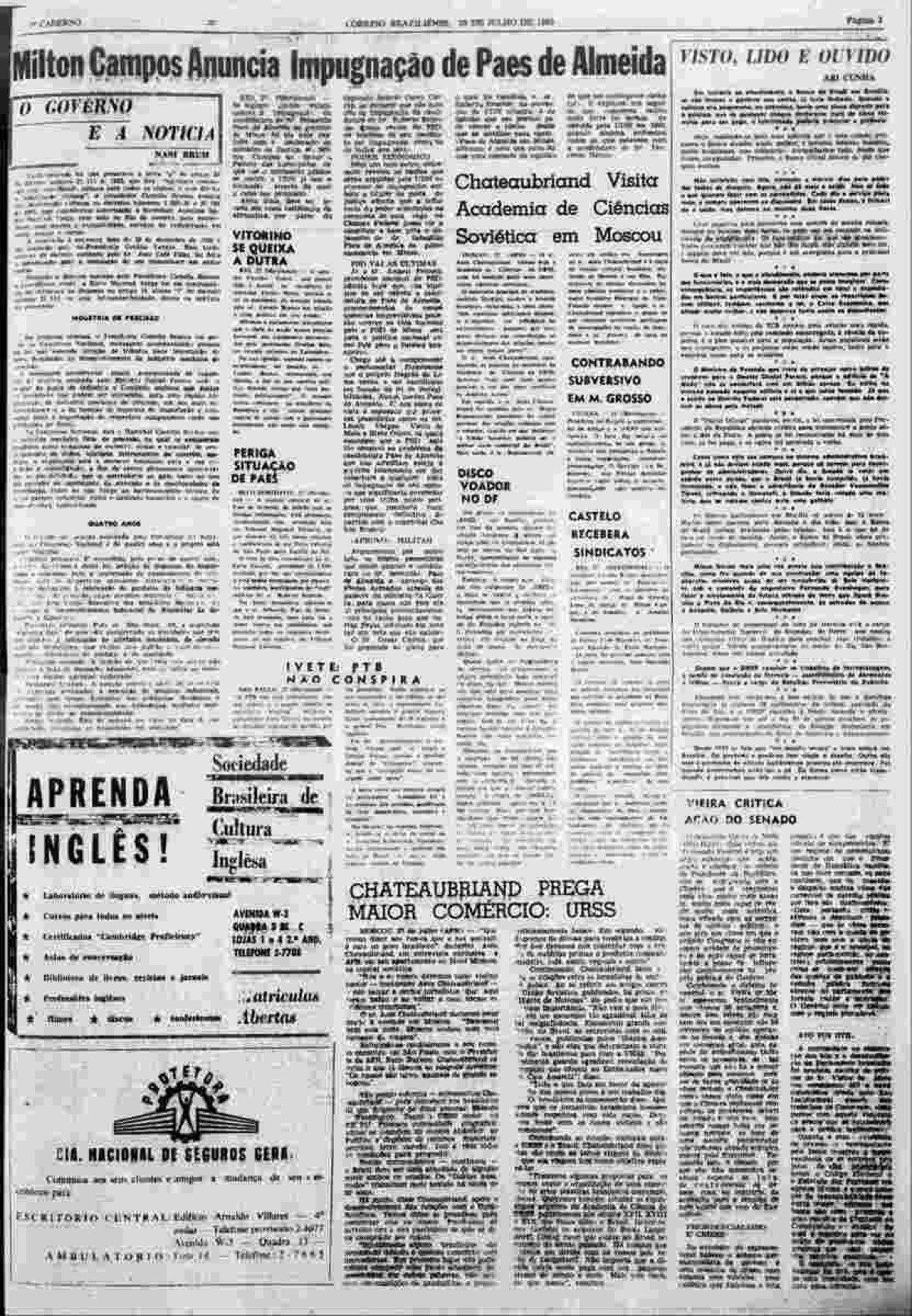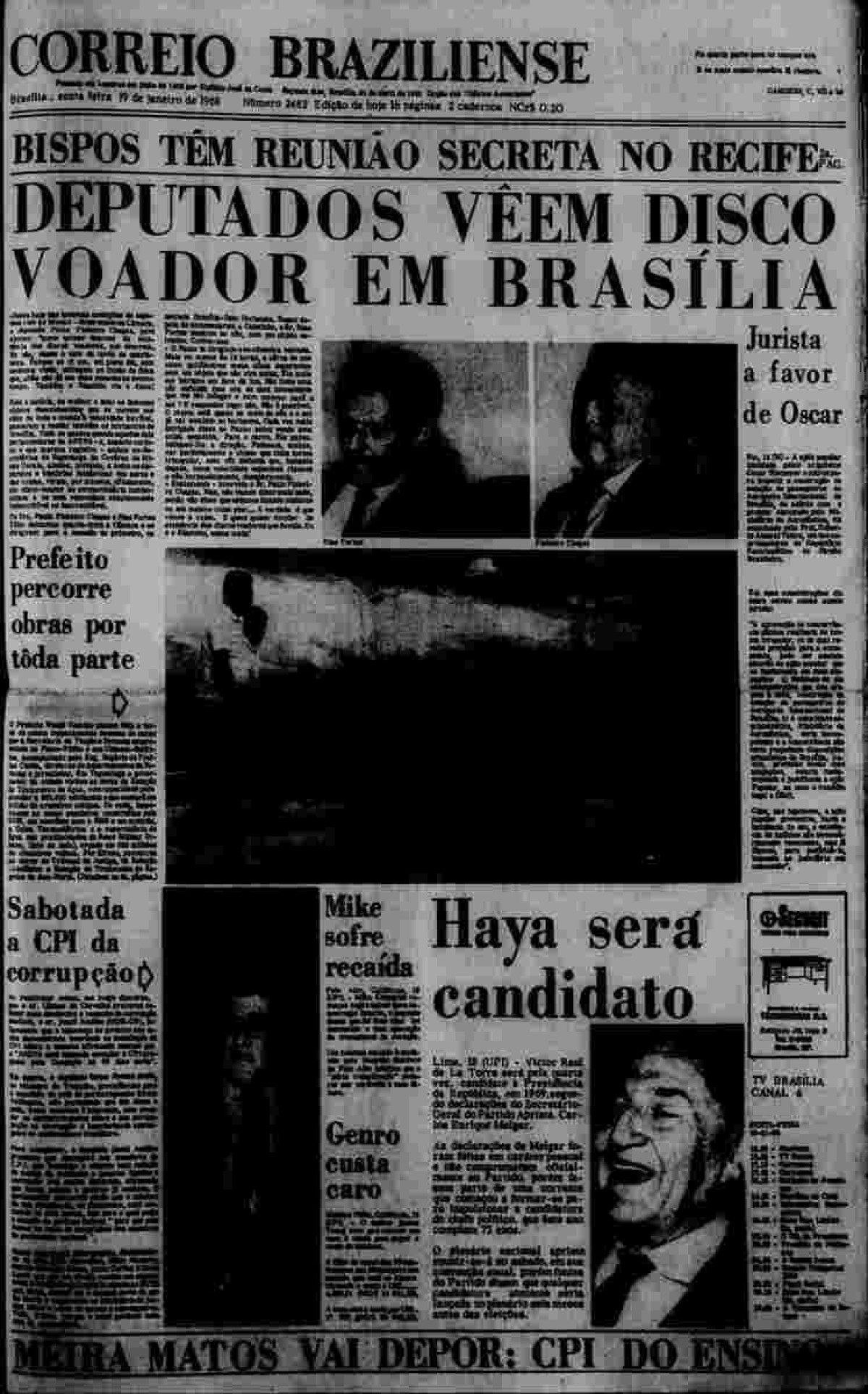 No Correio Braziliense, o assunto foi colocado em destaque inúmeras vezes. O jornal, foi o primeiro a registrar a aparição de um OVNI em Brasília, no ano de 1960. Entre 1960 e 1977, onze matérias sobre objetos voadores não identificados em Brasília foram veiculadas no veículo de comunicação. Entre as publicações, destaque para o primeiro registro em 1960. Com título “Disco voador no céu de Taguatinga”, a publicação traz o relato de traz o relato do dia 29 de novembro do mesmo ano, quando, às 21h30, foi visto um objeto não identificado, semelhante a uma bola de fogo cruzando o céu da cidade.
