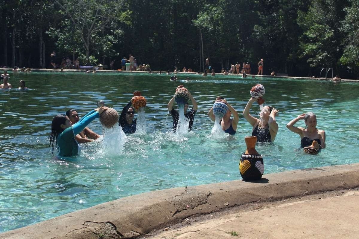O uso da área pública varia. As moças com os agbês fazem uma oficina do Clã das Águas, em uma das saídas mensais do curso que acontece com visitas a lugares “onde as águas se manifestam em Brasília”, como a beira do Lago Paranoá, conta a professora Natalia Sol. “Dançamos os movimentos das águas, das nossas emoções e arquétipos dos orixás, como Oxum (divindade das águas doces).O que fazemos não é ritual, mas abre espaço para nossas essências, as emoções se mostram. Trabalhamos as individualidades para compor um coletivo forte”. Ela considera Brasília “muito rica em espaços acolhedores”.