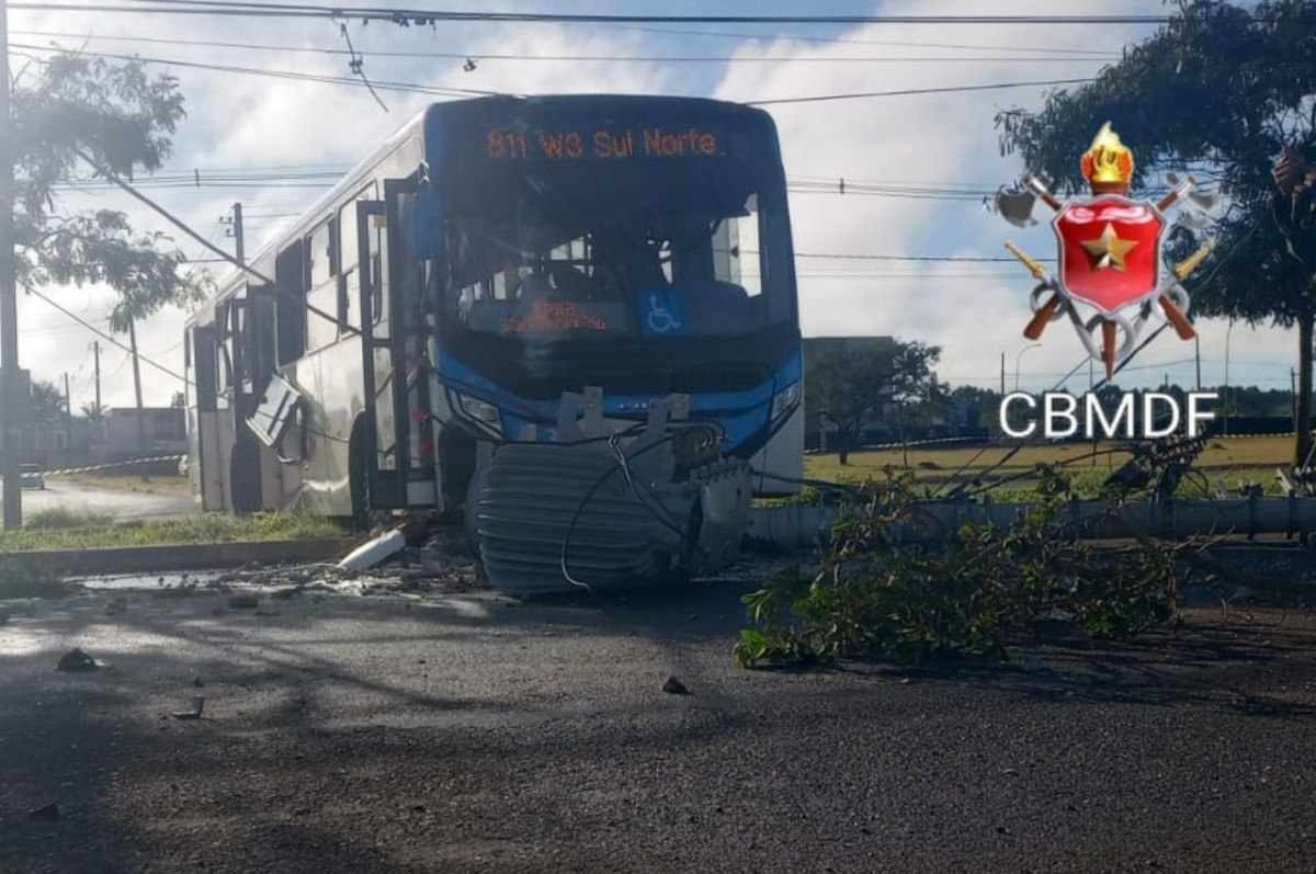 Ônibus bate em poste no Riacho Fundo após motorista sofrer convulsão