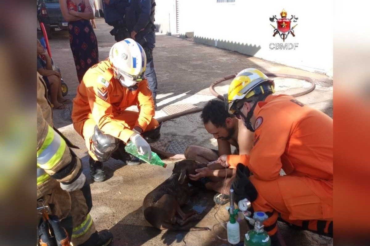 Cachorro desmaia em incêndio e é salvo por bombeiros no DF