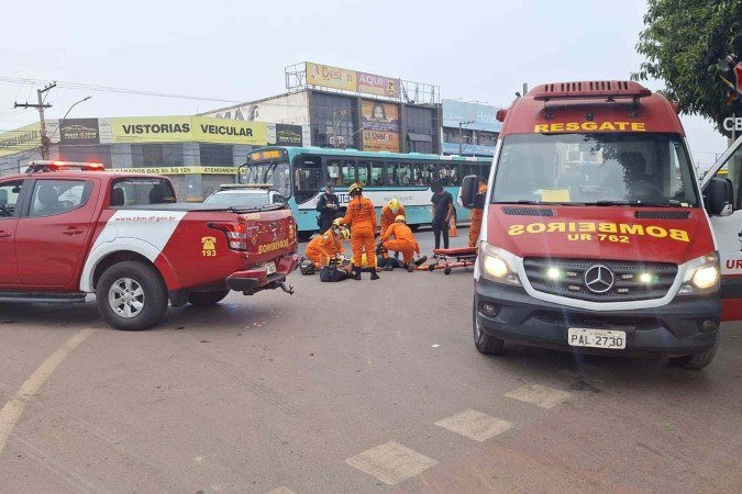 O motociclista encontrava-se no chão, apresentando escoriações e relatando dores nas costas e nas pernas - (crédito: Divulgação (CBMDF))