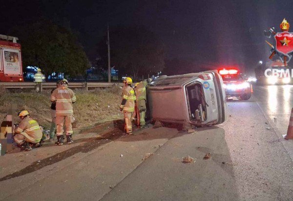 Os bombeiros foram acionados às 20h36, desta quinta-feira (18/9) para atender à ocorrência. Ao chegarem ao local, os militares encontraram o carro capotado na margem esquerda da rodovia. O motorista, identificado como H. D. A. M., de 53 anos, estava acompanhado de três passageiros.