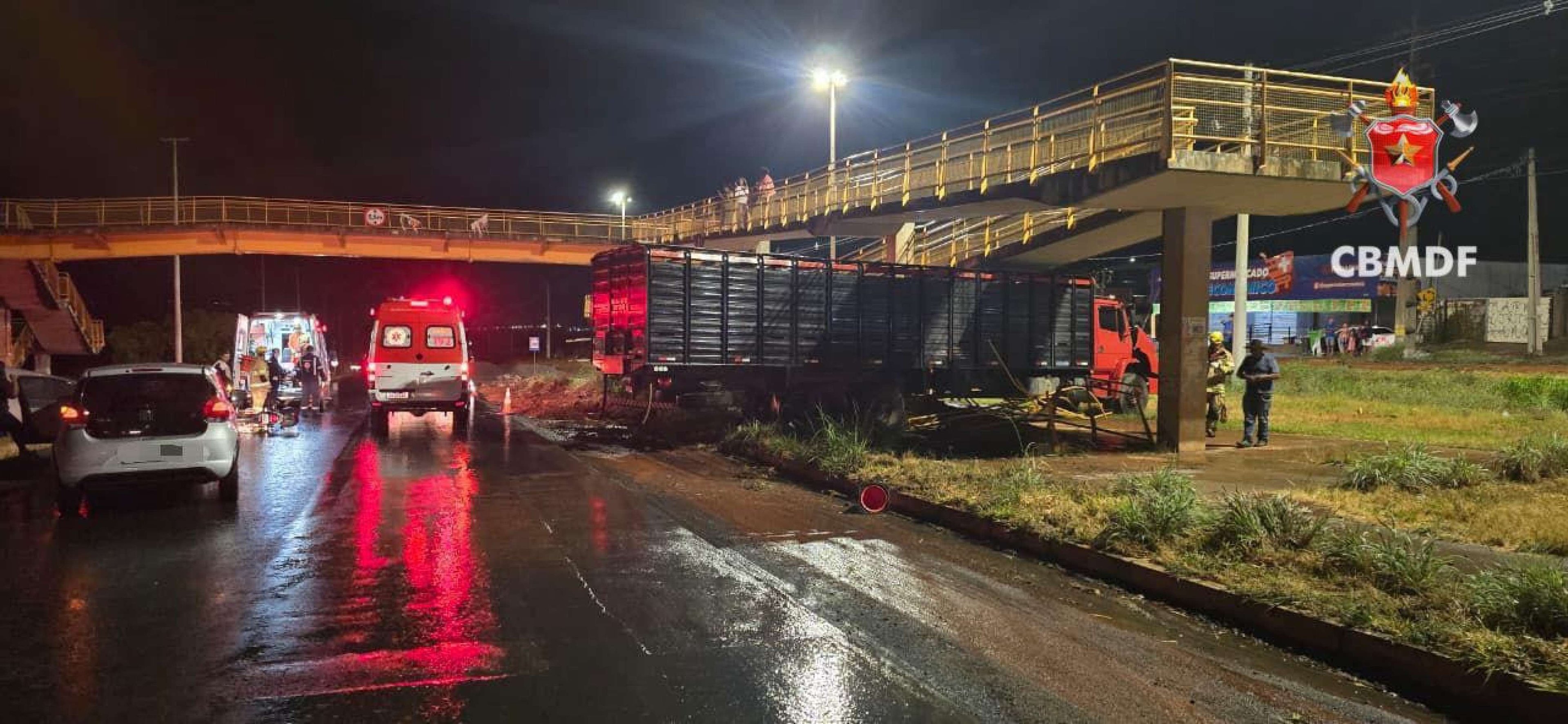 A área foi isolada e uma das faixas da rodovia precisou ser interditada para o trabalho das equipes - (crédito: Divulgação/CBMDF)