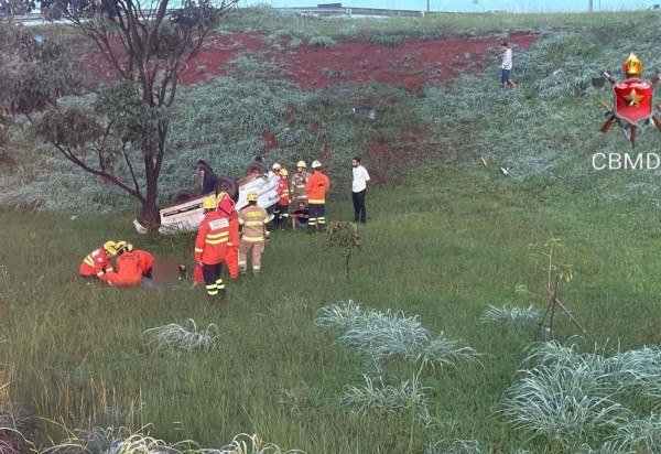 O veículo tinha três ocupantes, que receberam atendimento conforme os protocolos de trauma e foram encaminhados ao hospital após avaliação dos socorristas. A Polícia Militar do Distrito Federal ficou responsável pelo local. Até o momento, não há informações sobre a dinâmica do acidente.