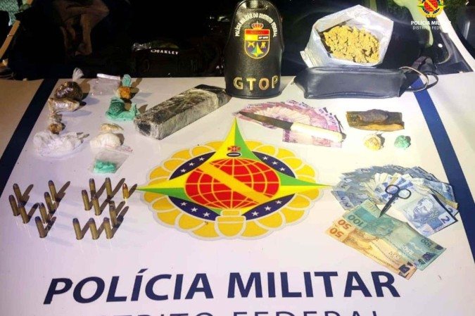 No interior do imóvel, os policiais localizaram 16 munições de calibre 357, além de uma munição de 9mm. Também foram apreendidas diversas porções de cocaína, crack e haxixe, tabletes de maconha, uma sacola com maconha orgânica, uma faca, R$ 414,35 em dinheiro e equipamentos usados para o fracionamento e a venda das substâncias.