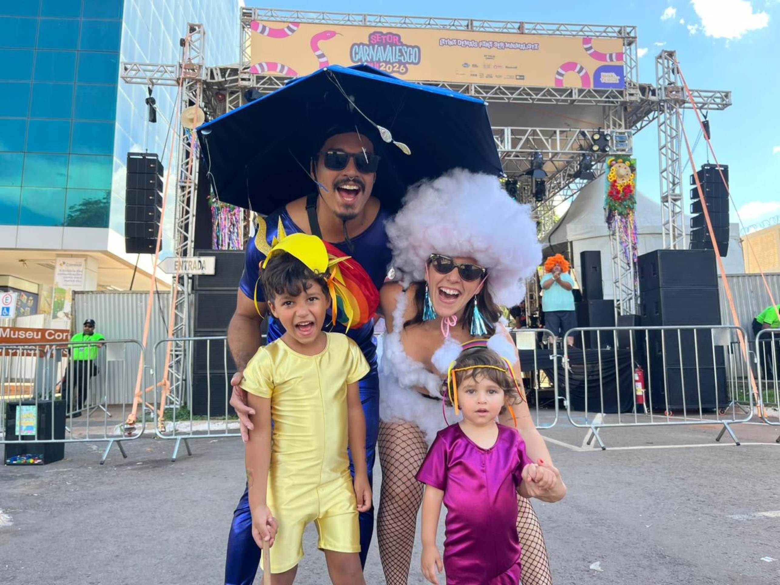 “Escolhemos a fantasia de pipoca porque, desde que aprendeu a andar, ela não para um segundo”, contou Bruno. Ele explicou que a família frequenta bloquinhos tradicionais de Brasília e vê a participação da filha como uma forma de introduzi-la à música e à diversão do carnaval desde pequena.