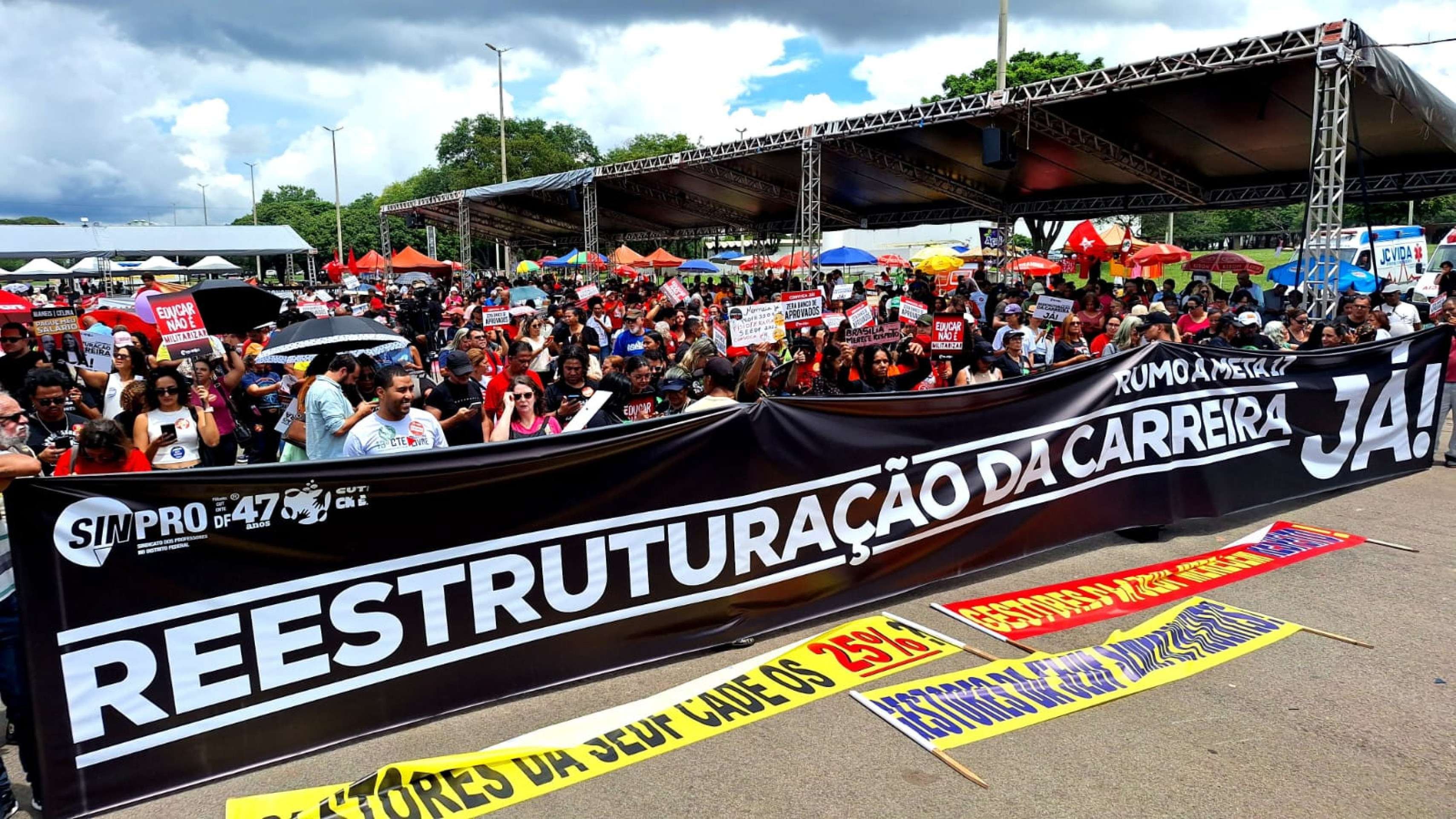 A diretora do Sindicato dos Professores do Distrito Federal (Sinpro-DF), Márcia Gilda, afirma que a prioridade é a efetivação da reestruturação da carreira, pauta que está em mesa de negociação com as secretarias de Economia, Educação e a Casa Civil. "Lutamos por valorização e melhores condições de trabalho. Hoje, são mais de 15 mil professores em condições precarizadas", declara, citando atrasos e erros no pagamento de temporários. "O amor pela profissão não paga conta. Precisamos que a reestruturação saia da mesa e se torne concreta", completa.