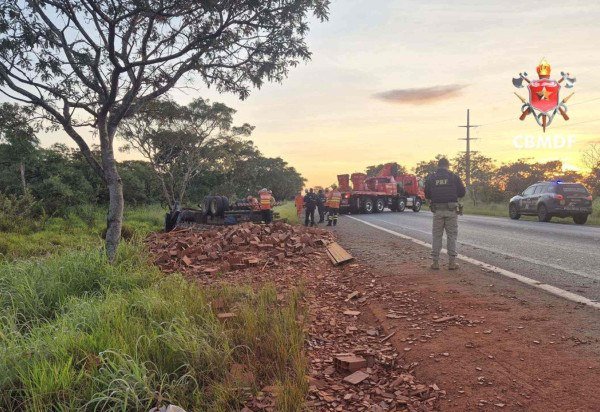 O Corpo de Bombeiros Militar do Distrito Federal (CBMDF) foi acionado para atender a ocorrência e encaminhou quatro viaturas até o ponto do acidente. Ao chegarem no local, as equipes de socorro encontraram o caminhão capotado e o condutor preso às ferragens.