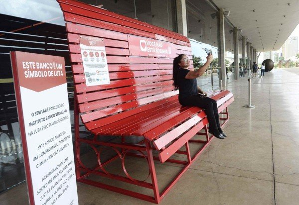 "Sentar e refletir. Levantar e agir". Esse é o lema do Instituto Banco Vermelho (IBV), cuja proposta é prevenir e informar a comunidade acerca das medidas de proteção às mulheres. Para isso, o grupo se vale da instalação de grandes bancos vermelhos que, mais do que um mobiliário urbano, tornaram-se símbolo de conscientização e mobilização contra o feminicídio e a violência de gênero. Ontem, foi a vez de Brasília ganhar a peça, a primeira do Distrito Federal instalada de forma fixa, em frente ao Sesi Lab, no Setor Cultural Sul, Bloco A, Asa Sul.