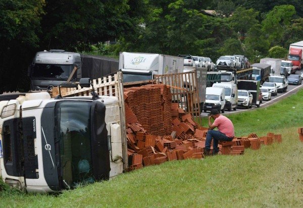 Durante o atendimento da colisão, um novo episódio foi registrado no mesmo trecho da rodovia. A poucos metros do local, uma carreta que transportava tijolos tombou no canteiro central. Apesar do ocorrido, o veículo não interferiu diretamente no trânsito, que já estava bloqueado por causa da colisão anterior.