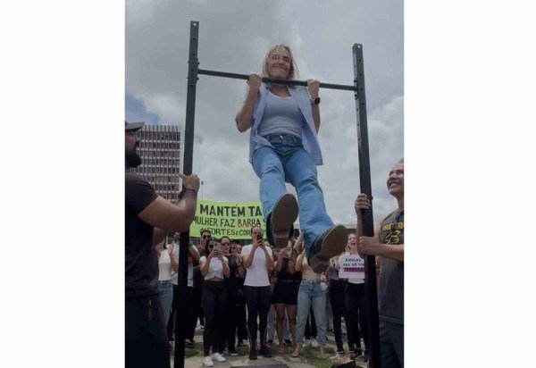 A vice-governadora Celina Leão (PP) compareceu, nesta terça-feira (17/3), ao protesto organizado pelas candidatas aprovadas no concurso do Corpo de Bombeiros, em frente ao Palácio do Buriti, a favor da permanência da barra dinâmica no Teste de Aptidão Física (TAF) do certame. Celina chegou a fazer o exercício e postou nas redes sociais.