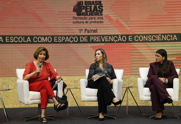 Mediado pelas jornalistas Adriana Bernardes e Mariana Niederauer, o painel reuniu vozes de diferentes áreas para discutir como o ambiente escolar pode atuar na prevenção da violência de gênero. Participaram a antropóloga, professora e pesquisadora do Núcleo de Estudos e Pesquisa sobre a Mulher da Universidade de Brasília (NEPeM/UnB), Lia Zanotta Machado; a juíza e presidente do Fórum Nacional de Juízas e Juízes de Violência Doméstica e Familiar contra a Mulher (Fonavid), Camila Guerin; e a educadora Katharine Bernardes.