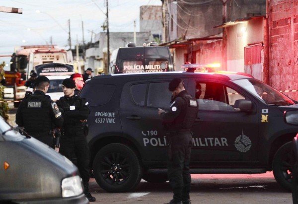 A rua de acesso à residência está completamente isolada. Além da PM, homens do Corpo de Bombeiros também estão no local.