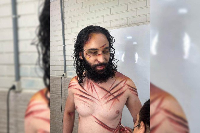 O Correio acompanha os bastidores da preparação do elenco da Via-Sacra de Planaltina, que transforma uma escola da região em um centro de mobilização. Entre pincéis que desenham as marcas da Paixão e o ajuste final das túnicas, o ator Rafael Gonçalves, 29 anos, prepara-se para interpretar Jesus Cristo pelo terceiro ano consecutivo. O processo de caracterização é intenso: três maquiadores se revezam para reproduzir as feridas do calvário no corpo do protagonista.