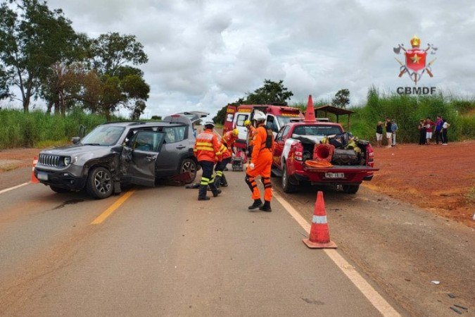 Três pessoas ficaram feridas em uma colisão entre dois carros na manhã desta sexta-feira (3/4), na BR-251. O acidente ocorreu próximo à divisa entre os estados de Goiás e Minas Gerais. Segundo o Corpo de Bombeiros Militar do Distrito Federal (CBMDF), no ponto da batida, as equipes encontraram um Jeep Renegade e um GM Vectra com danos materiais e ocupantes necessitando de cuidados médicos imediatos após o impacto. Veja: