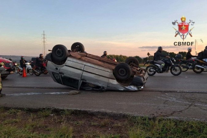 O Corpo de Bombeiros Militar do Distrito Federal foi acionado às 6h10 desta segunda-feira (20/4) para atender a uma ocorrência de colisão entre um Ford Ranger e um Fiat Uno, o qual capotou após o choque. Para o serviço, os militares fizeram uso de três viaturas.