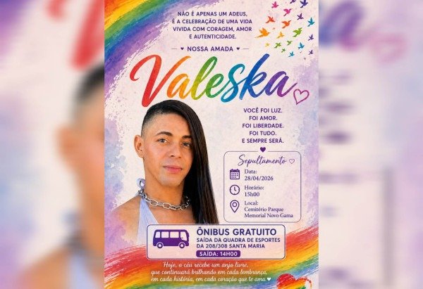 Para facilitar a participação, foi disponibilizado um ônibus gratuito, com saída prevista às 14h da quadra de esportes das Quadras 208/308 de Santa Maria, região onde Valeska vivia. A iniciativa busca garantir que amigos e moradores da comunidade possam prestar as últimas homenagens.