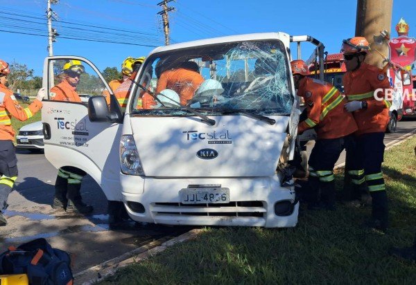 Após a remoção da vítima de dentro do caminhão, ela foi transportada para a unidade hospitalar indicada pela regulação médica. O homem se encontrava consciente e orientado. Apesar do choque, o poste não sofreu danos.