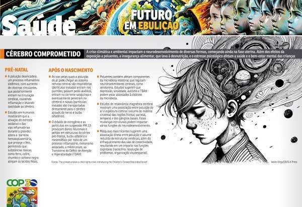 Silencioso e invisível, um dos impactos mais devastadores da crise climática na saúde infantojuvenil não é medido por problemas respiratórios, infecções nem choque térmico. Estudos revelam que os poluentes atmosféricos e os extremos de temperatura alteram o neurodesenvolvimento, desde a fase intrauterina, comprometendo, a longo prazo, o aprendizado, a cognição e a sanidade mental. Os mesmos prejuízos podem afetar o cérebro de crianças expostas à insegurança alimentar, outro efeito colateral de um mundo cada vez mais insalubre.