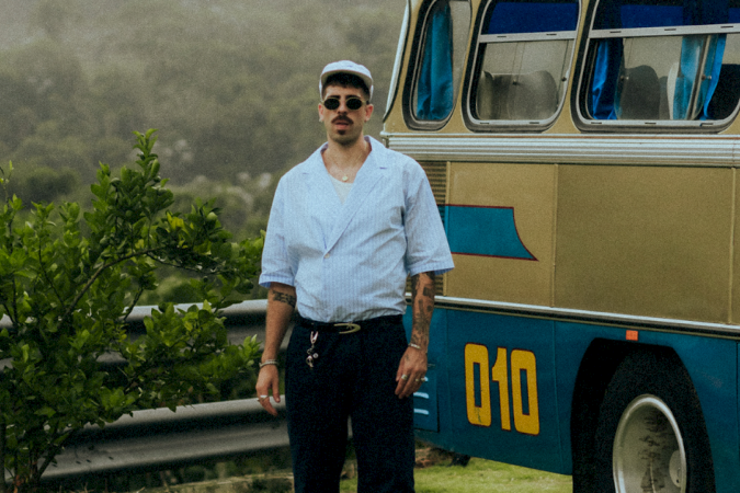 NUNEZ: "A ideia do conceito nasceu comparando a Karavana com a vida. Nessa viagem que é viver, o aprendizado vem daquilo que é mais antigo, mas somos nós que lecionaremos o futuro. Essa ideia de modernizar o passado para revolucionar o futuro está bem presente na estética dos clipes. A gente tentou construir um visual mais vintage — o ônibus é de 1970 —, mas, ao mesmo tempo, as roupas são modernas, justamente para causar esse impacto de olharmos para o passado e o futuro simultaneamente e entendermos que o tempo da nossa viagem na Terra é curto. As pessoas na Karavana representam sentimentos, histórias e vivências diferentes, mas que se conectam através do som e, assim, iniciam uma relação. Visualmente, me inspirei em referências como Tyler, The Creator, Marcelo D2, Anderson .Paak — acho que são artistas com quem me conecto pelo fato de também serem diretores criativos. Eles criam as ideias e têm voz ativa em todos os processos da construção da obra'.