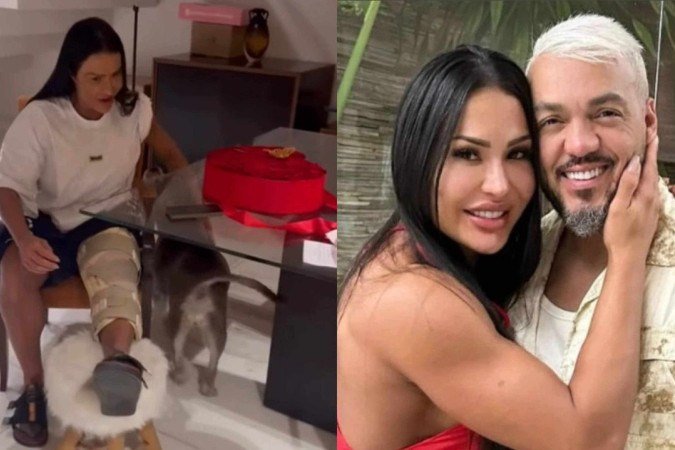 Durante o período de recuperação, Gracyanne emocionou os seguidores ao mostrar, nos stories, um presente cheio de romantismo. Uma caixa em formato de coração, decorada com rosas vermelhas e detalhes dourados, foi entregue à musa fitness.