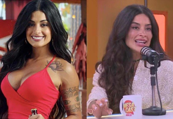 Eliminada logo na primeira semana do “BBB 26”, Aline Campos marcou presença no “Mesacast BBB” desta quarta-feira (21).