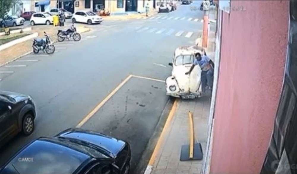 Vídeo: Homem sai correndo após ser atropelado por fusca, em São Paulo