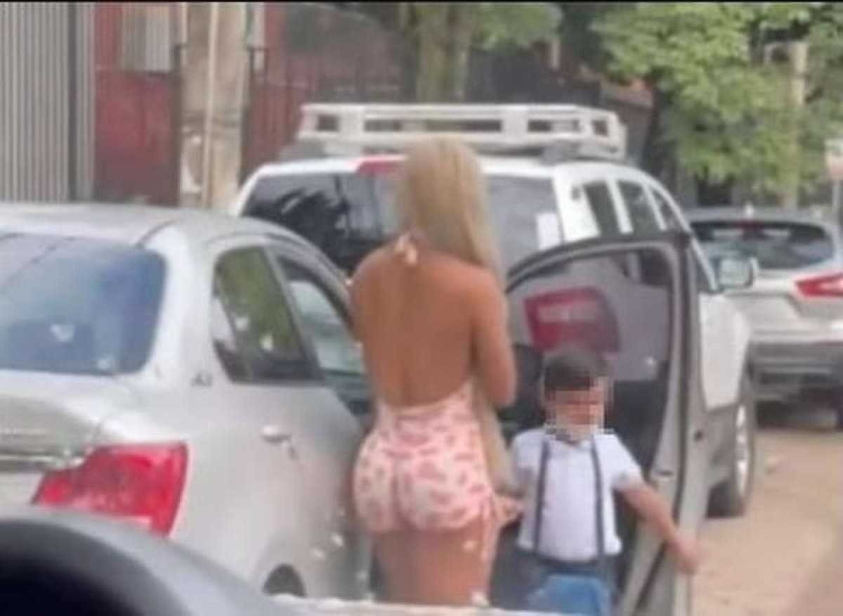 Miss boliviana leva filho à escola com macaquinho fitness e rede não perdoa
