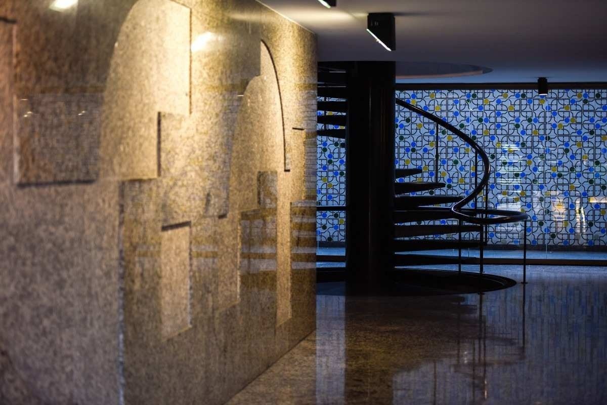 Prédio na rua Cerrito foi inaugurado em 1989. Os interessados poderão adentrar o edifício em horários especiais e conhecer novos ângulos da arquitetura, podendo contemplar um mural de azulejos com as cores da bandeira do Brasil e um relevo em uma parede de granito. Banners com textos e fotos contam a trajetória pessoal e profissional de Olavo e de Athos.