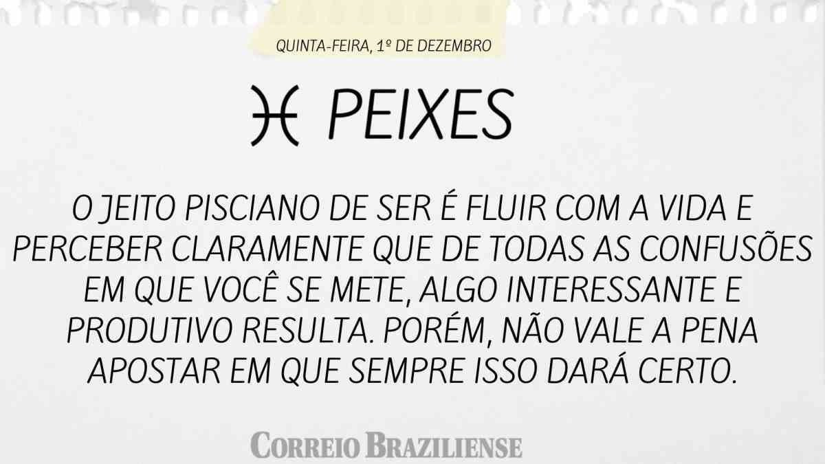 O jeito pisciano de ser é fluir com a vida e perceber claramente que de todas as confusões em que você se mete, algo interessante e produtivo resulta. Porém, não vale a pena apostar em que sempre isso dará certo.