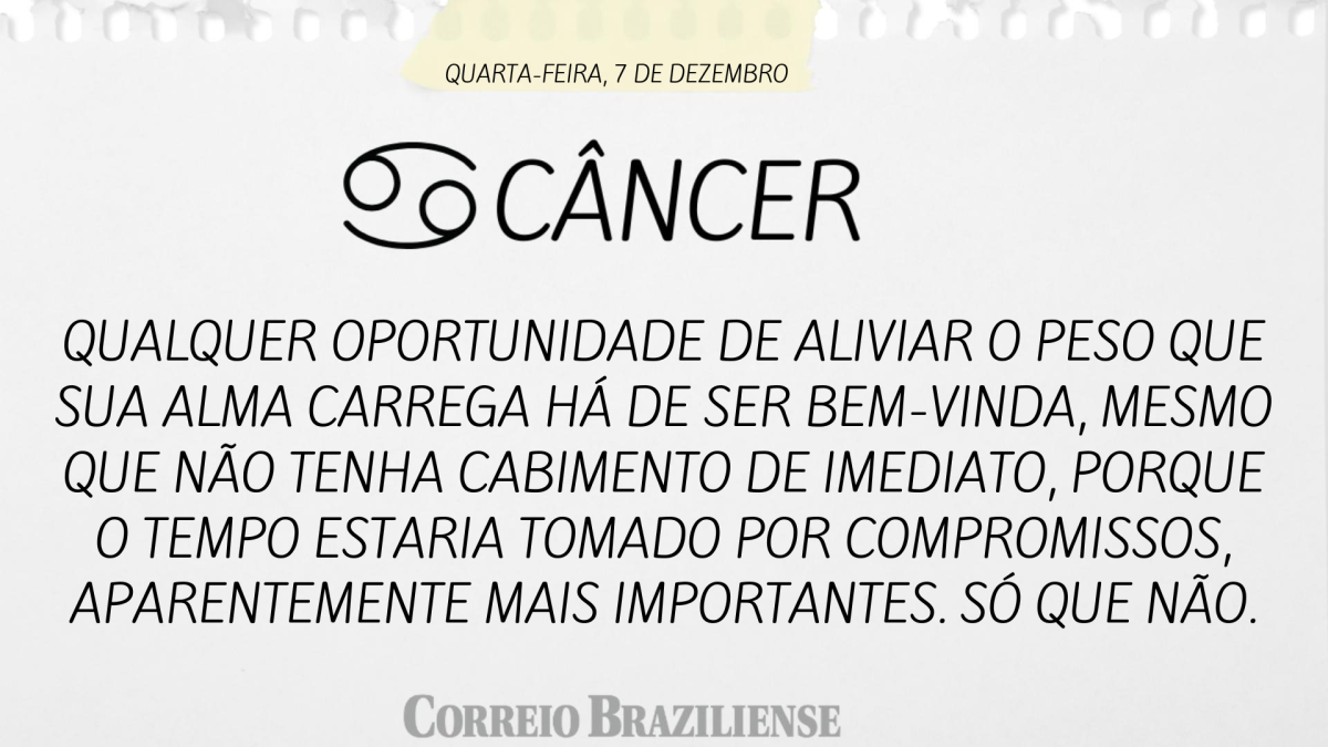 Qualquer oportunidade de aliviar o peso que sua alma carrega há de ser bem-vinda, mesmo que não tenha cabimento de imediato, porque o tempo estaria tomado por compromissos, aparentemente mais importantes. Só que não.