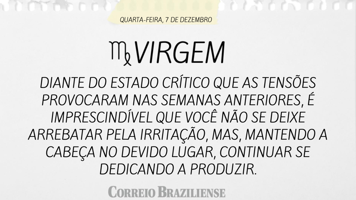 Diante do estado crítico que as tensões provocaram nas semanas anteriores, é imprescindível que você não se deixe arrebatar pela irritação, mas, mantendo a cabeça no devido lugar, continuar se dedicando a produzir.