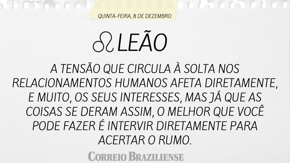 A tensão que circula à solta nos relacionamentos humanos afeta diretamente, e muito, os seus interesses, mas já que as coisas se deram assim, o melhor que você pode fazer é intervir diretamente para acertar o rumo.