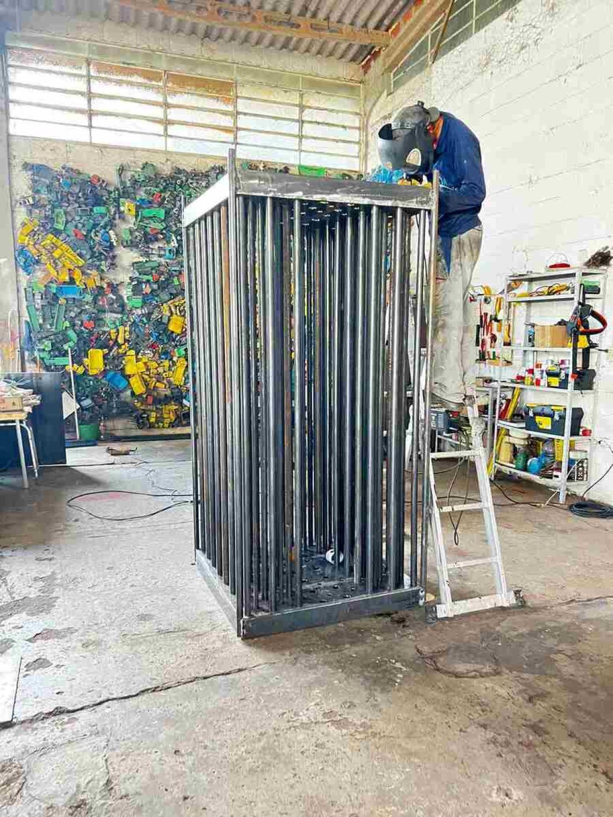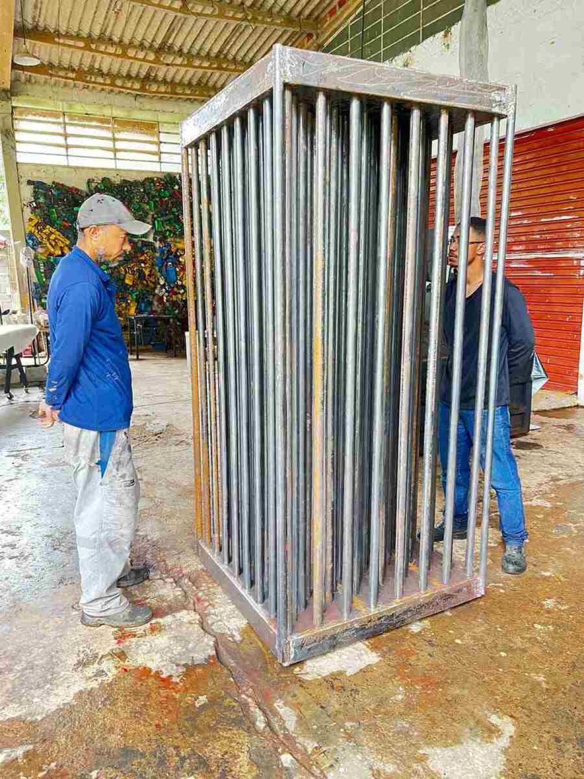 A peça consiste em uma jaula gigantesca, de quase uma tonelada, dentro da qual repousa uma enorme garrafa com água mineral. No entanto, a jaula tem tantas colunas que sequer é possível tocar no recipiente. "A frase do meu pai ficou na minha cabeça e eu achava estranho porque, na época, as águas não eram tão poluídas quanto hoje", conta o artista. "Quando fui pesquisar como era a situação da água no mundo, fiquei chocado: 2 bilhões de pessoas não têm acesso à água potável. Então, fiz a escultura falando da inacessibilidade da água potável."