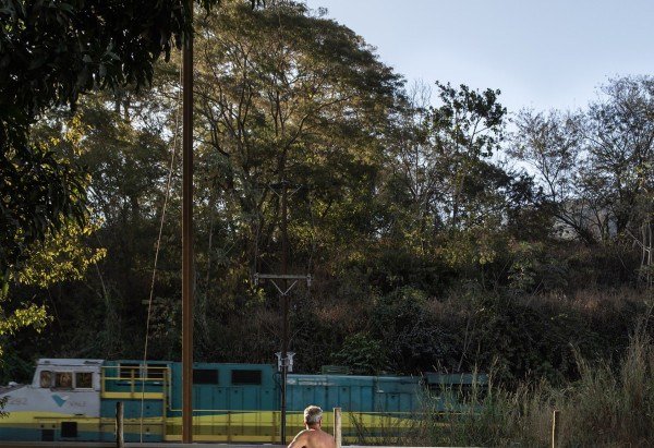 É uma coisa impressionante que eu tento mostrar nos meus trabalhos: o volume de terras raras que são tão cobiçadas pelo capital e geoeconomia todo o tempo. Passei tanto tempo à margem das ferrovias de mineração e você vê, o tempo todo, trem atrás de outro, trem atrás de outro. São intervalos pequenos e com muito material. Cada trem tem 330 vagões e, se estiver em velocidade média, vai demorar de 4 a 5 minutos para passar. É um volume inacreditável e são os nossos morros e paisagens que são triturados e escoados. Vai deslizando para fora do Brasil uma riqueza da qual pouquíssimo fica para a gente, e essas comunidades à margem veem isso.