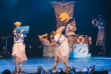 Com a ideia de que os textos de Bertold Brecht podem muito bem dialogar com as crianças, a companhia amazonense Buía Teatro traz para o palco da Caixa Cultural o espetáculo Bertoldo, o tubarão que queria ser gente, em cartaz nesta sexta-feira (13/2), às 19h. A montagem nasceu de uma residência durante a qual os integrantes da companhia pesquisaram possibilidades de textos cuja dramaturgia pudesse ser bem recebida pelas crianças. "Escolhemos vários e caímos nesse do Brecht, que imagina se tubarões fossem homens", conta Tércio Silva, diretor da companhia. "O universo do oceano é um universo que a criança visita muito, está no dia a dia dela, na brincadeira, nas músicas muito conhecidas. A gente começou a experimentar e, a partir disso, fomos construindo a dramaturgia, as músicas. É um espetáculo que a gente pesquisa há cinco anos e que nasceu de um experimento."