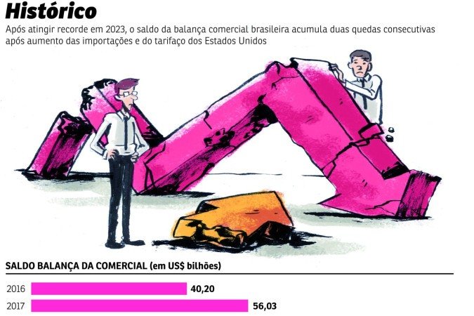 Conforme os dados do Mdic divulgados ontem, no ano passado, as exportações cresceram 3,5% — em termos de valor em relação ao registrado em 2024 — e atingiram US$ 348,7 bilhões, ao passo que as importações saltaram 6,7%, alcançando US$ 280,4 bilhões, na mesma base de comparação. Apesar dos recordes registrados em 2025, o crescimento maior das importações fez com que o superavit da balança comercial brasileira fosse inferior aos picos dos dois últimos anos — 2023 e 2024 - e, com isso, o saldo comercial do ano passado foi o terceiro melhor da série histórica. Em relação ao período anterior, o superavit comercial encolheu 7,9%, para US$ 68,3 bilhões.