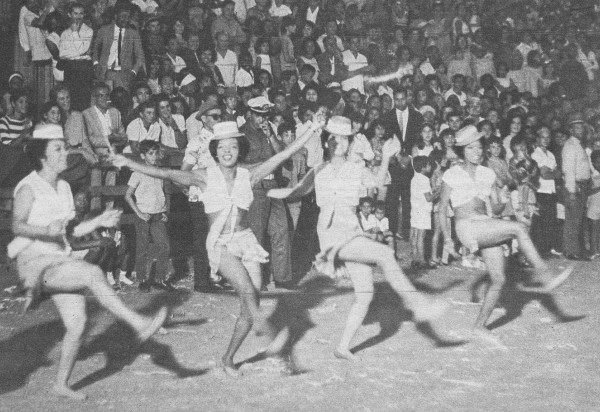 “Os auto-falantes espalhados ao longo da faixa central da avenida apresentaram, a partir das 18h, músicas carnavalescas”, descreve a reportagem Nem a chuva atrapalhou os foliões, de autor desconhecido. “As arquibancadas, com capacidade para abrigar cerca de duas mil pessoas, se apresentaram, nos três dias, totalmente lotadas.”