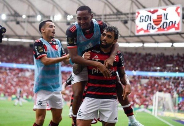 Entretanto, no desenrolar da jogada, Léo Ortiz lançou Plata, que deu um leve desvio e deixou Gabigol na cara de Everson. O atacante demonstrou frieza e deslocou o goleiro atleticano para marcar o segundo tento do Flamengo na decisão. Na comemoração, o artilheiro foi dar um abraço no treinador.