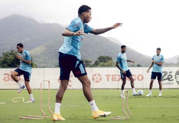 O técnico Filipe Luís deve escalar o Flamengo da seguinte forma: Rossi; Wesley, Léo Ortiz, Léo Pereira, Ayrton Lucas (Alex Sandro); Pulgar, De la Cruz, Arrascaeta; Gerson, Cebolinha e Pedro.