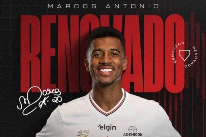 O São Paulo anunciou a renovação de contrato com o volante Marcos Antônio. O jogador, que pertence à Lazio, da Itália, estava inicialmente emprestado ao Tricolor até 30 de junho deste ano, mas agora teve seu vínculo renovado com o Tricolor até a mesma data do ano de 2026. O Soberano terá a opção de compra após este período.