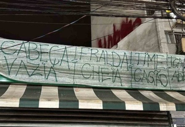 Uma das mensagens ironizava o lema popularizado por Abel: “Cabeça fria, coração quente” virou “Cabeça vazia, fralda cheia, time cagão”. Outra pedia a saída do treinador, com um direto “Fora, Abel”, enquanto uma terceira apontava críticas à gestão: “Presidente inexistente, diretoria incompetente”.