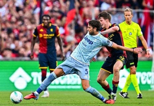No primeiro tempo, que terminou sem gol, a Juventus foi melhor, empurrando o Genoa para a defesa. Tanto que, tirando um contra-ataque aos 25 minutos, quando Ellertsson entrou na área e chutou para boa defesa de Di Gregorio, só deu Juve. Mas chance real de gol apenas na reta final, sempre com Yildiz pela esquerda. Na primeira, o turco fez grande jogada e rolou para Gatti chutar quase na marca do pênalti. Mas o goleiro Leali fez defesa excepcional. Pouco depois, foi o próprio Yildiz que chutou. Leali defendeu parcialmenteContudo, Jonathan David ficou sobra. Mas isolou.